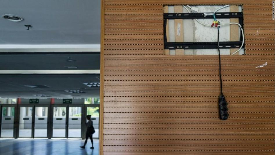 这面墙壁上曾经装着一台电视,现在早已不知去向。