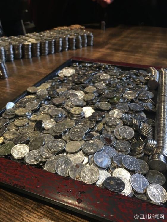 池子中的小伙子们捞钱捞得辛苦,一旁数钱的工作人员也不轻松,三名工作人员在对钱币进行分类清点,将游戏币等杂物清理出来,硬币被整齐的归置好。四川新闻网记者 漆奇 周子铭 雷兹 图片来源:四川新闻网官方微博