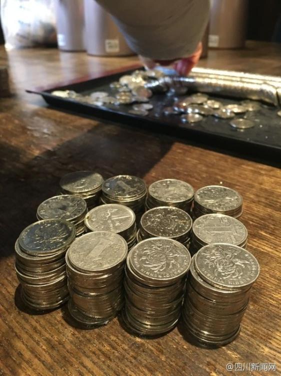 被码放整齐的硬币。四川新闻网记者 漆奇 周子铭 雷兹 图片来源:四川新闻网官方微博