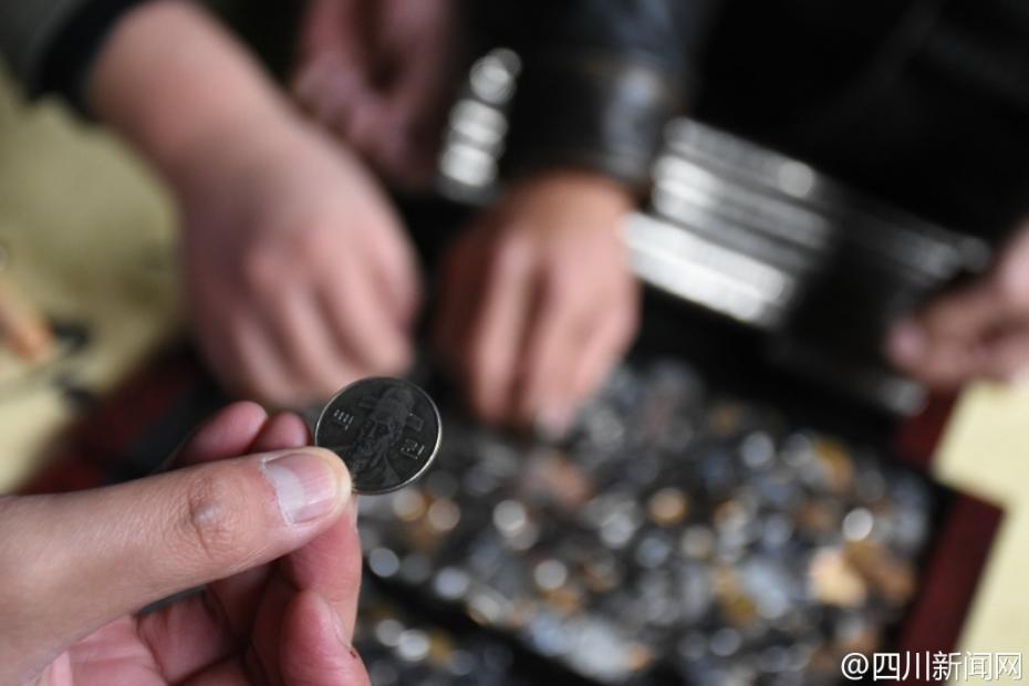 成都宽窄巷硬币池捞钱 满桌硬币密密麻麻