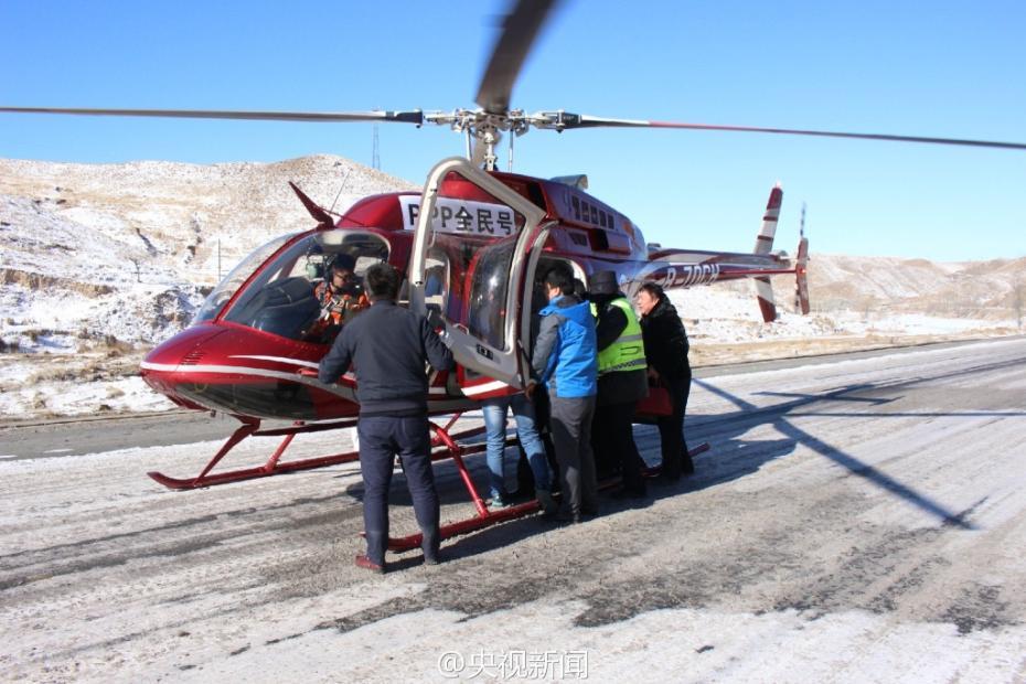 2月10日,内蒙古包头市某盘山公路,雪后路面结冰,一小轿车因操作不当侧滑与四轮货车相撞,车尾撞向山体,车内女子因强烈冲击脊椎受伤,无法移动。交警部门紧急联系空中救援力量,用直升机将伤者救出。目前,伤者生命体征平稳。央视记者 张扬 图片来源:央视新闻微博