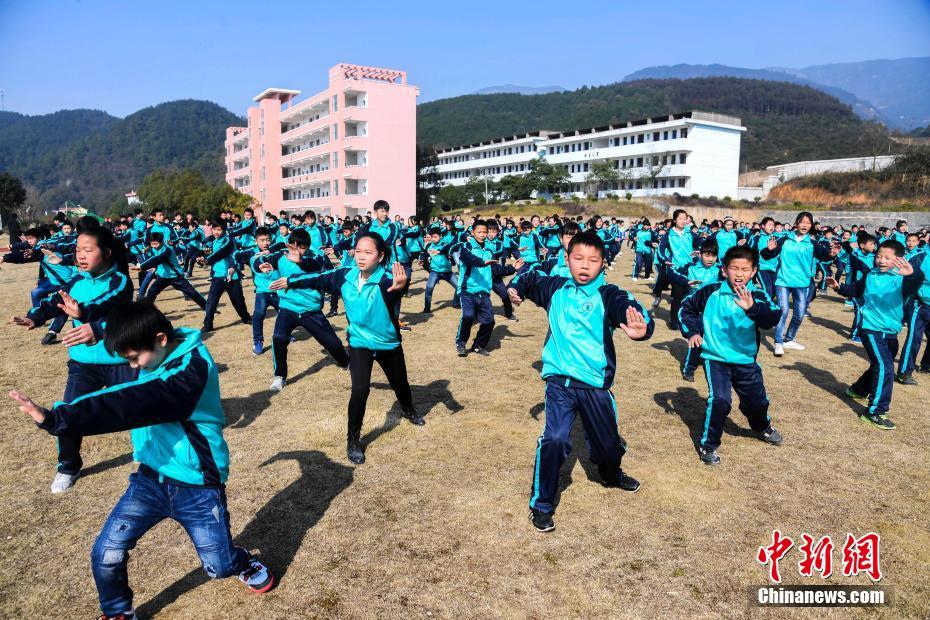 2月12日,是江西省新余市渝水区人和乡中学春季开学第一天,当天上午,200余名中学生在操场上演练当地传统辉江武术,抖擞精神迎接新学期。近年来,为弘扬武术精神,传承非遗文化,新余市将传统武术、剪纸、花鼓戏、夏布刺绣等课程引入校园,让学生们在课堂上感受传统文化的魅力。周亮摄