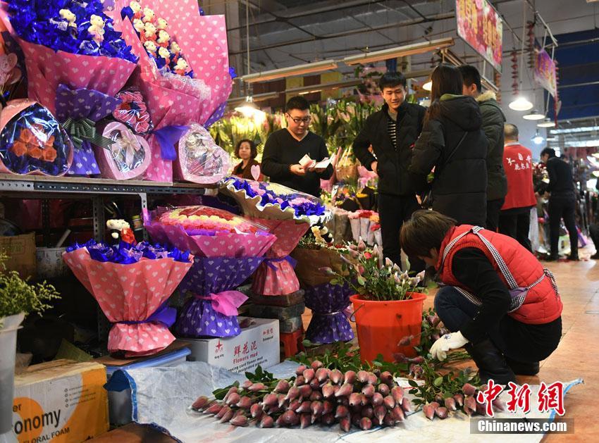 2月13日,情人节将至,在长春市销售鲜花的商家们为吸引顾客眼球,奇思妙想,香皂花、玩偶花、彩色花应有尽有,创意十足。 张瑶 摄