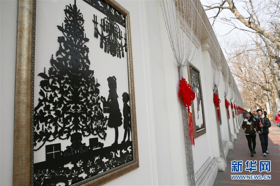 2月14日,行人从衡山艺廊展示的铁艺画旁经过。近日,28幅铁艺画作品出现在上海市衡山路一处建筑工地的百米围墙上,为途经的市民和游客带来别样的艺术享受,这座“露天美术馆”就是新亮相的衡山艺廊。新华社记者裴鑫摄