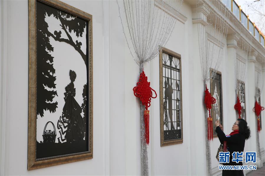 2月14日,一名行人在拍摄衡山艺廊展示的铁艺画。近日,28幅铁艺画作品出现在上海市衡山路一处建筑工地的百米围墙上,为途经的市民和游客带来别样的艺术享受,这座“露天美术馆”就是新亮相的衡山艺廊。新华社记者裴鑫摄