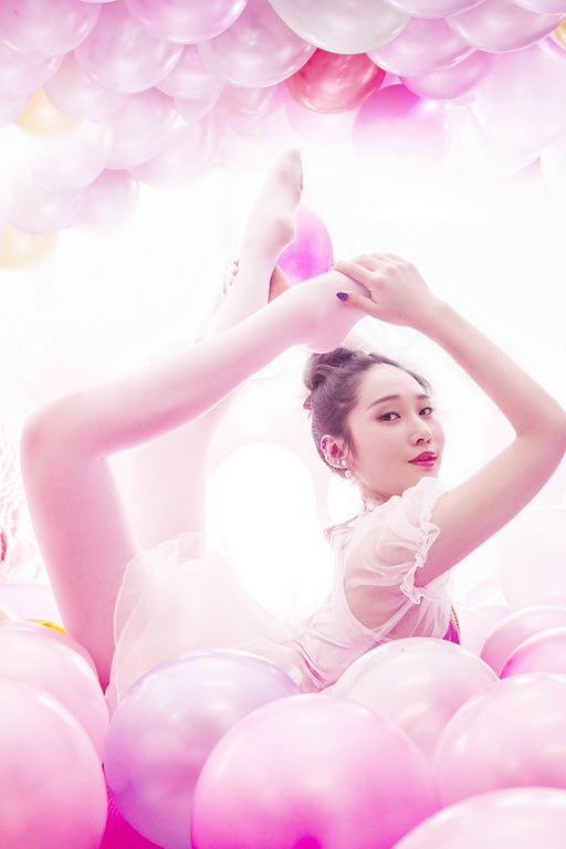 柔术公主曝美照 彩色气球蓬蓬裙显梦幻气质