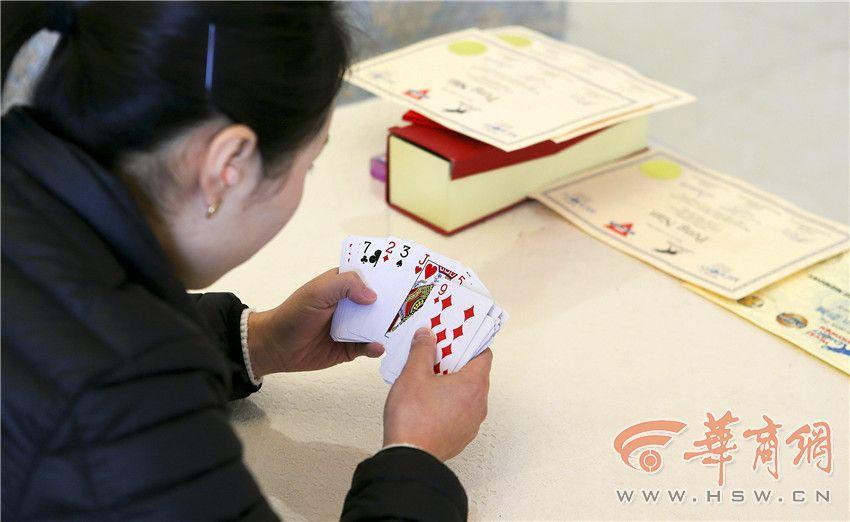 2分钟后,开始用另一副扑克牌为先前无序的扑克牌排序,经过逐一比对,前后顺序完全一致。华商报记者 苗巧颖 摄影 黄利健
