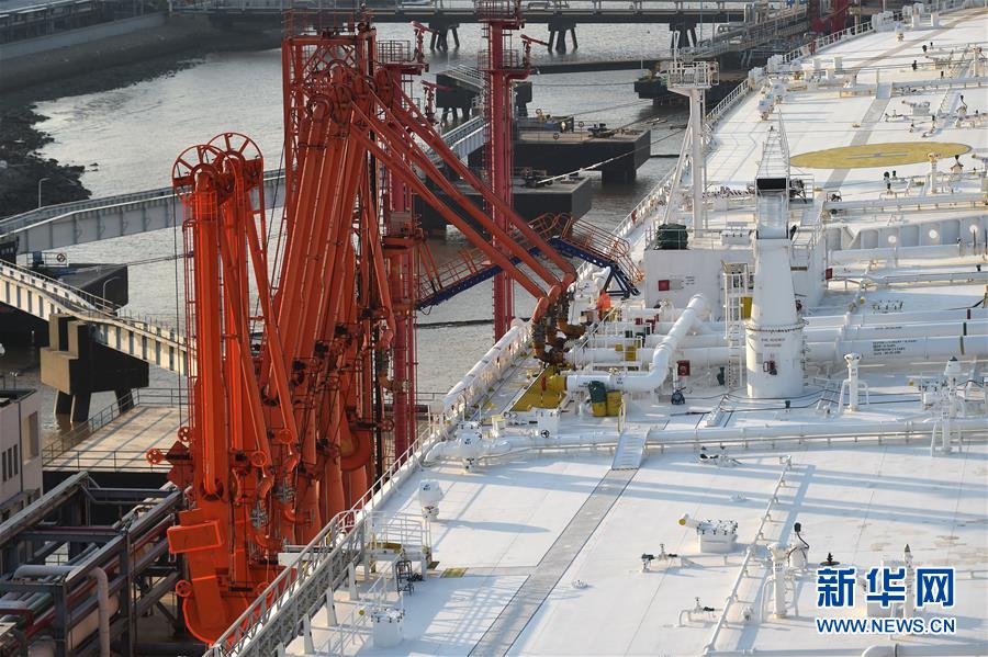超巨型原油轮“泰欧”号停泊在宁波舟山港大榭港区实华二期45万吨原油码头,通过码头输油臂进行卸油作业(2月15日摄)。 2月16日下午,世界在航的最大载重吨级别船舶(超巨型原油轮)“泰欧”号在首次停泊宁波舟山港大榭港区实华二期45万吨原油码头完成卸油后离泊。据了解,该轮船长380米,船宽68米,目前载重吨为41.9万吨。2月13日,装载33.96万吨原油的该船挂靠宁波舟山港大榭港区实华二期45万吨原油码头,创下挂靠宁波舟山港单艘油轮实际装载量最大的纪录。宁波舟山港大榭港区实华二期45万吨原油码头于2012年5月正式投产,为亚洲最大、中国首个正式投用的45万吨原油码头。新华社记者黄宗治 摄