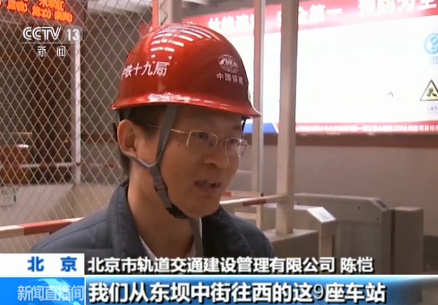 北京市轨道交通建设管理有限公司陈恺:我们从东坝中街往西的这9座车站,目前基本上实现了进场。目前已经开工的有工人体育场站、朝阳公园站和东坝中街站。
