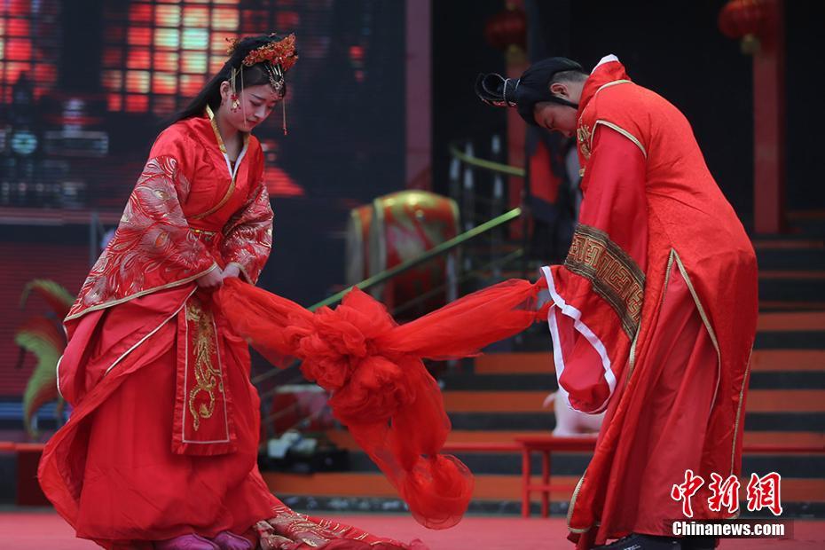 江苏淹城上演春秋“皇室婚礼” 靓丽“媒婆”抢眼