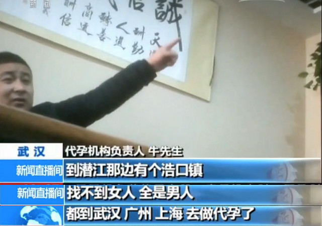 代孕机构负责人牛先生:潜江那边有个浩口镇,到那个镇上,过段时间你去看,找不到女人,全是男人,都到武汉、广州,去做代孕了。