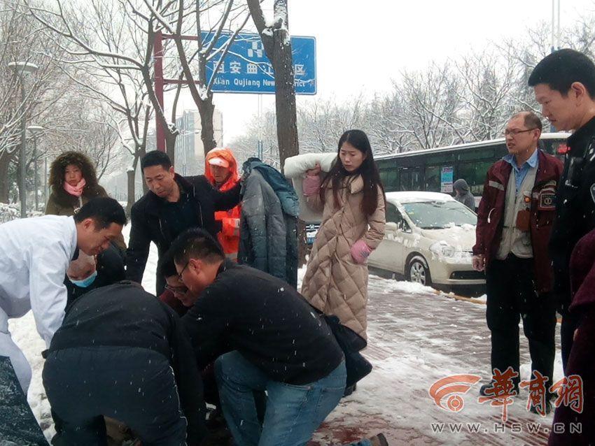 孙女士说:“尽管有路人把伞斜靠在老人身上,但雪大,露在伞外的棉袄上很快就落满雪花。路人担心‘二次伤害’,不敢轻易移动老太太。一位路人提出,应该给老人盖上棉袄,增加温度。这一建议立刻被认可,大家都积极想办法,有人跑到附近一诊所要被子,有人回家取棉衣,我也给朋友打了电话。”(华商报记者付启梦 热心读者 孙香芹 供图)图片来源:华商网