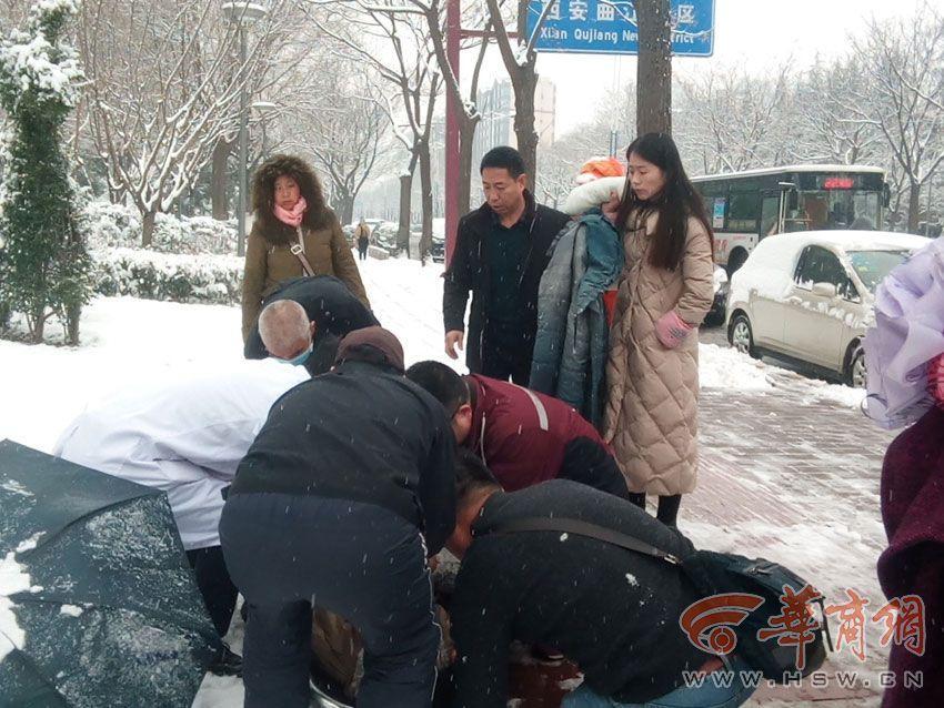据孙女士称,附近诊所的小伙不到3分钟就抱来一床被子,还有业主拿来棉衣。“我们不少人的棉衣被打湿了。一位刚好路过的中年男子,得知情况后,立刻脱下棉衣,盖在老太太身上,自己却缩着身子站在雪中。”孙女士说。上午10时40分许,120救护车赶来将老人抬上车,大伙儿才放下心。老人的儿子在上救护车前,不断对人群作揖,连说谢谢。“直到11点,小孙才到我家,当时,头发、棉衣都湿漉漉的,我让她赶紧冲澡,但她却说自己不冷,因为雪中那一幕让她暖和,她必须要把它说出来。”丁女士说。(华商报记者付启梦 热心读者 孙香芹 供图)图片来源:华商网