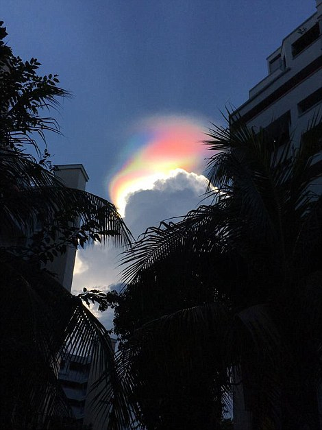 近日,新加坡上空出现一片罕见的“火彩虹”,并在空中约持续了15分钟。火彩虹又叫环地平弧,出现概率非常低,它是太阳和一些云层在特定的时间和位置出现罕见的交汇,云层中的冰晶体反射光线形成不同的可见波谱光。这种现象的形成条件非常苛刻,由于该现象十分罕见,人们拍摄的机会也很难得。