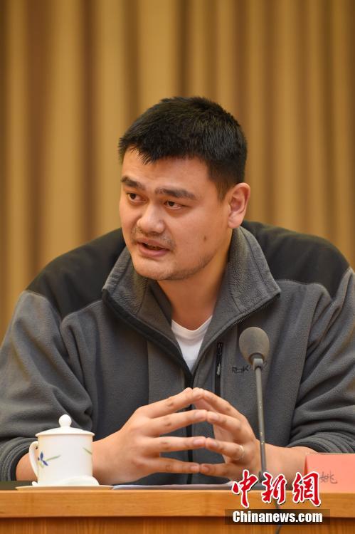 2月23日,在中国篮球协会第九届全国代表大会上,姚明当选主席。图为2016年4月8日,中共中央宣传部、国务院新闻办公室在北京举办讲好中国故事文化交流使者研讨班,姚明在研讨班上发言。 中新社记者 侯宇 摄