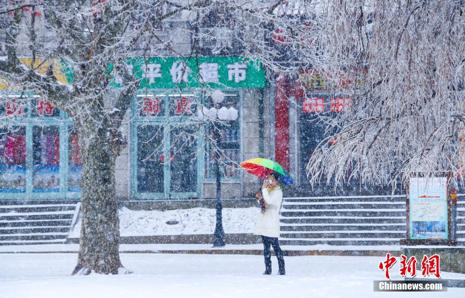 2月23日,江西庐山牯岭街,游客遇见突如其来的春雪,变得兴奋异常,拿出手机定格下这美丽浪漫的瞬间。当日,漫天飞舞的雪花使春日的江西庐山“一夜青丝换白发”,变成了银装素裹的冰雪童话世界。雪霁后,锦绣谷苍山负雪,云雾在怪石嶙峋的群峦间游走奔腾,如梦如幻。中新社发龙晨 摄