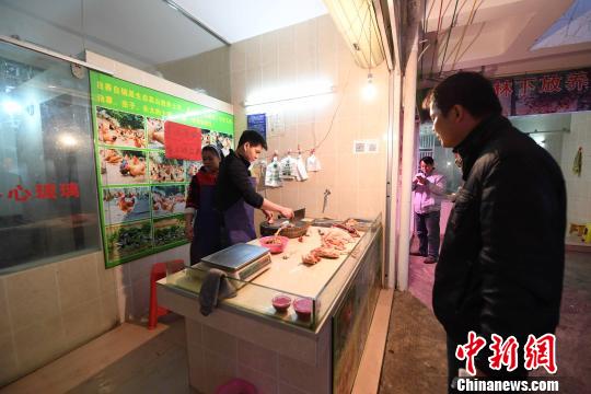 2月24日,市民在南宁市二桥北农贸市场购买鸡肉。 胡雁摄