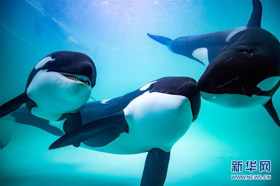 珠海长隆虎鲸繁育基地的虎鲸(2月24日摄)。 2月24日,作为国家鲸豚繁育计划的重要组成部分,中国首个“虎鲸繁育基地”在珠海横琴长隆海洋王国正式启用。已经移居此处1年至3年的9条虎鲸,包括5条雄性和4条雌性,年龄在5到13岁之间,目前最小的一条体重为1.2吨、体长4米多,最大的一条体重4吨、体长6.5米多。新华社记者刘大伟 摄