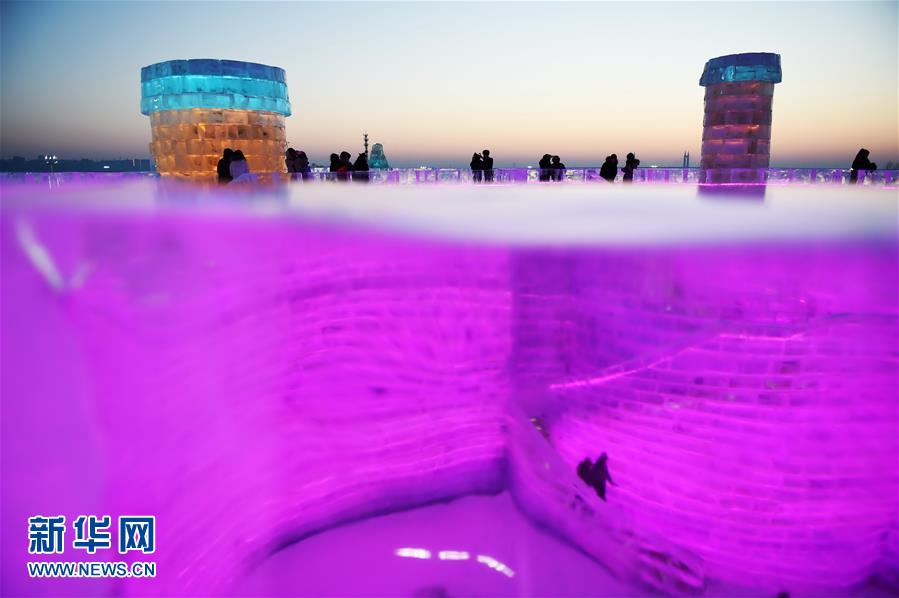 气温逐渐回暖,哈尔滨冰雪大世界的冰雕依然矗立,吸引很多游客来此感受冰情雪韵。