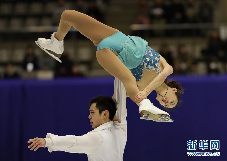 2月25日,中国队选手彭程(上)/金杨在比赛中。当日,在第八届亚洲冬季运动会花样滑冰双人滑比赛中,中国选手于小雨/张昊以223.88分的总成绩成绩夺得冠军,队友彭程/金杨以197.06分的总成绩获得亚军。新华社记者杨世尧摄