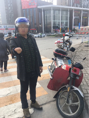 从男子口中得知,男子多年前在工厂被机械所伤,失去了右上肢的前臂。为了生存,男子买了一辆二手摩托车从事送快递的工作。