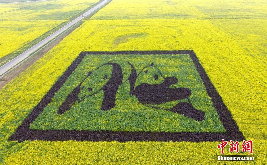 2月27日,四川邛崃,油菜田间的“熊猫兄弟”图案。当日,四川邛崃冉义镇万亩油菜花海中惊现憨态可掬的熊猫兄弟、丘比特之箭、农耕扶犁等巨型创意图,从高空俯视一幅幅生动的大地景观,十分有趣。中新社记者刘忠俊 摄