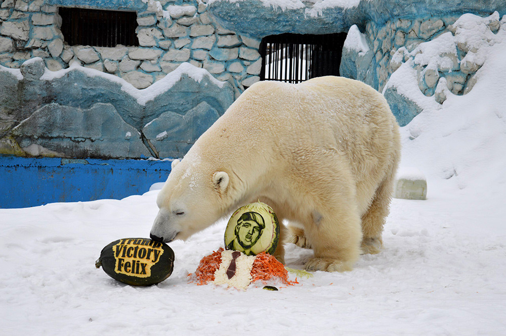 俄动物园白熊情侣秀恩爱 曾成功预测特朗普当选