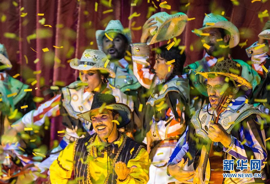 2月28日,在巴西里约热内卢,特级组桑巴舞校表演者参加巡游活动。 2月28日,2017年里约狂欢节特级组桑巴舞校花车巡游活动在巴西里约热内卢桑巴大道落下帷幕。 新华社记者李明 摄