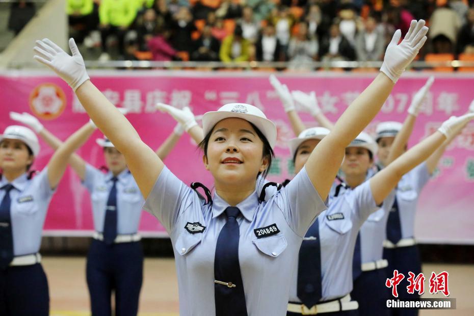 3月2日,地处广西北部的融安县举行首届健身操大赛。33支队伍600多名女性同台比拼,跳起动感活力的健身操,摆出难度各异的队形,以此倡导健康向上的生活方式,迎接第107个“三八”妇女节的到来。谭凯兴摄