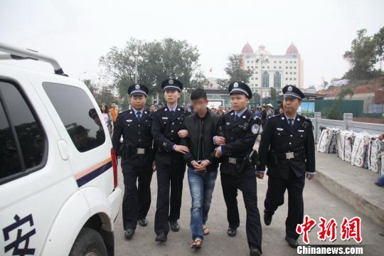 图为将网上追捕逃犯押回审讯。黄卓 摄