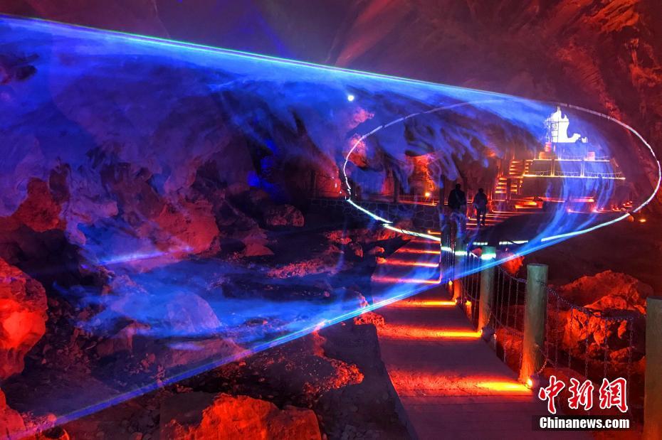 3月6日,来自全国的百余名游客慕名来到湖北五峰土家族自治县长生洞,观看洞内的“崖壁星空”景观首秀。长生洞位于北纬30°地理圈,其形成距今约1.4亿年,洞口巧生东西峭壁间,纵深300米,横跨1500米,上下三层,高约50至100米。洞内分布着“穿越时空”“转世莲花”“崖壁星空”等20多处景点,千姿百态的钟乳石与七彩幻灯交相辉映,让人在欣赏后叹为观止。五峰县位于湖北省西南部,以喀斯特地貌为主,平均海拔1100米,是一个少数民族山区县。董晓斌摄