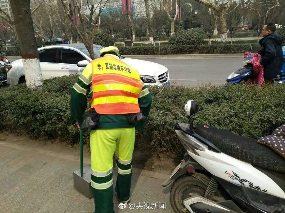 保洁员反光背心自带萌语 你还会乱扔垃圾吗(   / 9 )