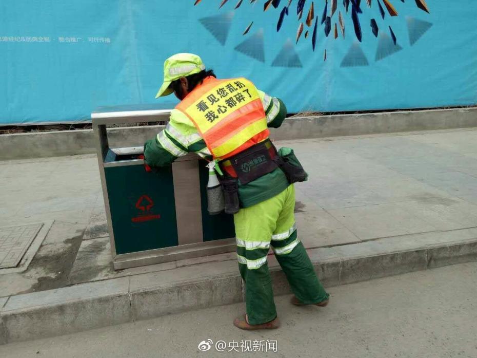 “千山万水都是情,不要乱扔行不行”、“抽刀断水水更流,乱扔垃圾愁更愁”……最近,西安一保洁公司给环卫工发放了2000件自带“萌语”的反光背心。负责人说,这些标语鲜活可爱,也是对大家环保意识的提醒。央视记者杨永青 图片来源:央视新闻官方微博