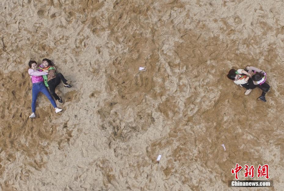 3月8日,正值妇女节,众多职业女性来到湖南长沙石燕湖参加“撕名牌”大赛,以此缓解平日工作中的压力。图为女士们撕名牌互不相让。杨华峰摄