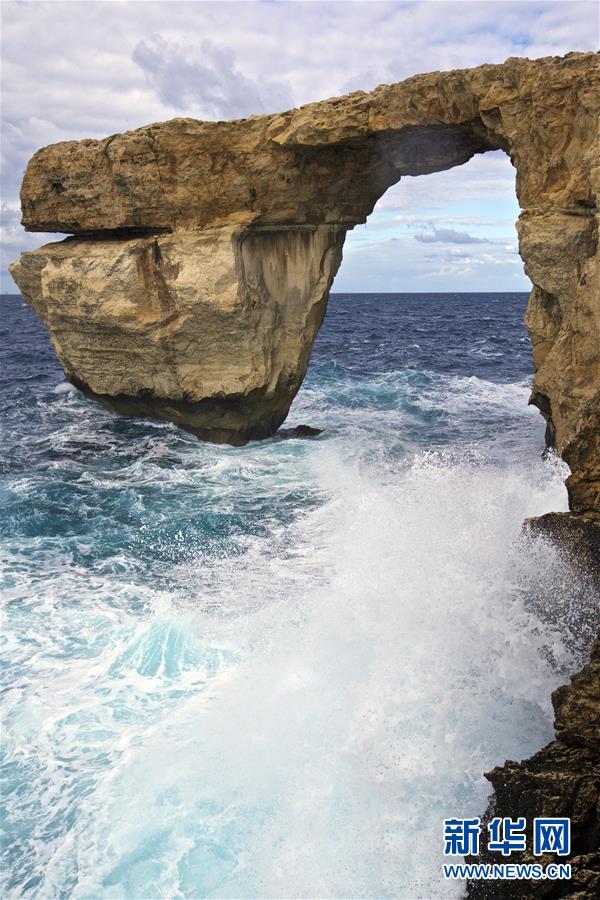 据《马耳他时报》报道,由于连日来的大风引起巨浪冲刷,马耳他著名景点“蓝窗”3月8日上午坍塌,这一景点将永远消失。“蓝窗”位于马耳他第二大岛戈佐岛西北角,由猛烈的海浪千百年来冲刷石灰岩而形成。两边有直径约100米的天然石墩,支撑着一个石盖,形成一个高约100米、宽约20米的“窗子”,从中可以看到对面蓝色的波涛,因而得名“蓝窗”。这是2015年11月28日拍摄的“蓝窗”。新华社记者金宇摄