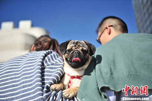 资料图:2017年1月1日,昆明举办宠物运动会, “汪星人”萌态百出。 中新社记者 刘冉阳 摄