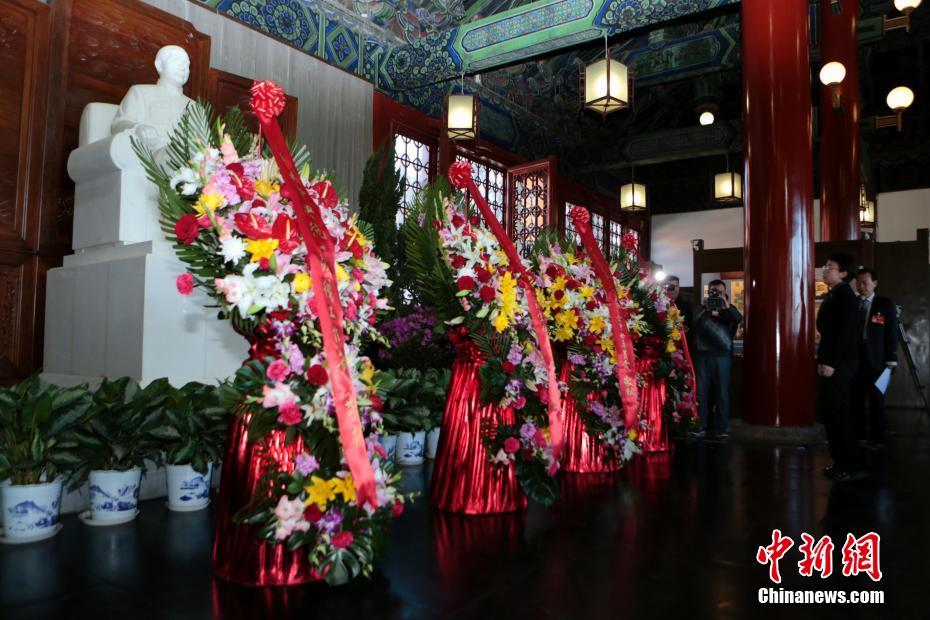 3月12日,北京各界人士在中山公园中山堂举行仪式纪念孙中山先生逝世92周年。全国政协副主席陈元代表中国人民政治协商会议全国委员会,全国政协副主席、民革中央常务副主席齐续春代表中国国民党革命委员会中央委员会,中央统战部副部长林智敏代表中共中央统战部,北京市副市长程红代表北京市政府,民革中央副主席、民革北京市委会主委傅惠民代表中国国民党革命委员会北京市委员会,向孙中山先生像敬献了花篮。中新社记者 李慧思 摄
