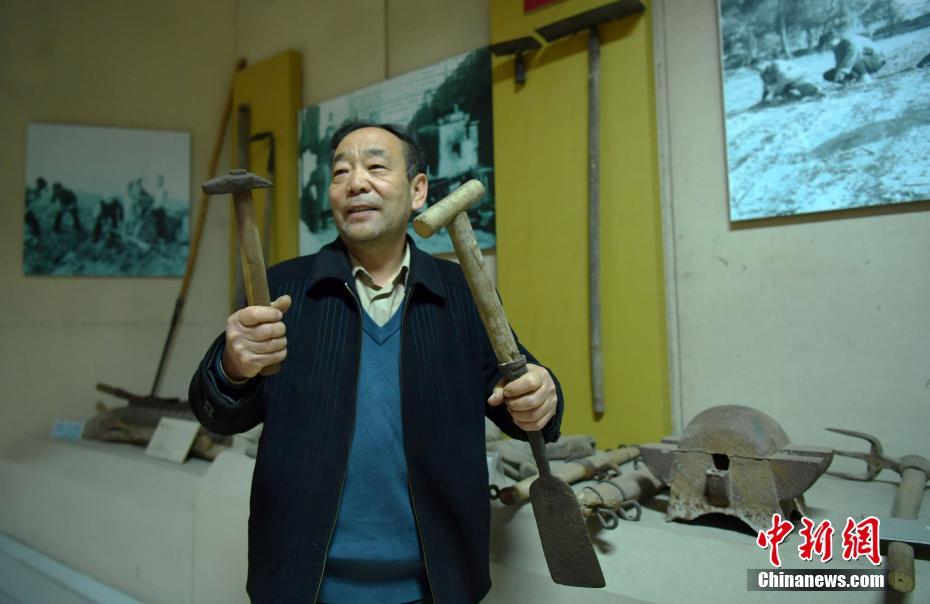 3月13日,河北石家庄65岁的老人何信芳痴迷“农耕文化”,十年来收集300余件旧农具,其中大部分正在该市博物馆展出。在博物馆内,犁、耧、锄、耙、钝、辘轳、独轮车等各种老物件让人目不暇接。图为何信芳正在展示钉马蹄的相关器具。中新社记者翟羽佳 摄