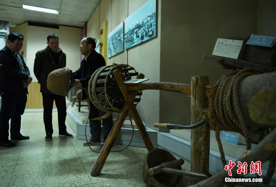 3月13日,河北石家庄65岁的老人何信芳痴迷“农耕文化”,十年来收集300余件旧农具,其中大部分正在该市博物馆展出。在博物馆内,犁、耧、锄、耙、钝、辘轳、独轮车等各种老物件让人目不暇接。图为石家庄博物馆内,何信芳(右一)与参观者交流。中新社记者翟羽佳 摄