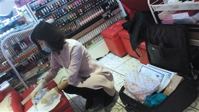3月10日,崇文门搜秀三楼美甲区一美甲店,自称为“医生”的刘某正在为一女士打瘦脸针。