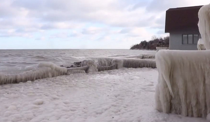 当地时间3月12日,美国纽约州罗切斯特市的摄影师约翰 库奇科(John Kucko)回到自己的湖边度假屋后,发现度假屋被厚厚的冰层覆盖,宛如冰雪世界,令他惊奇不已。