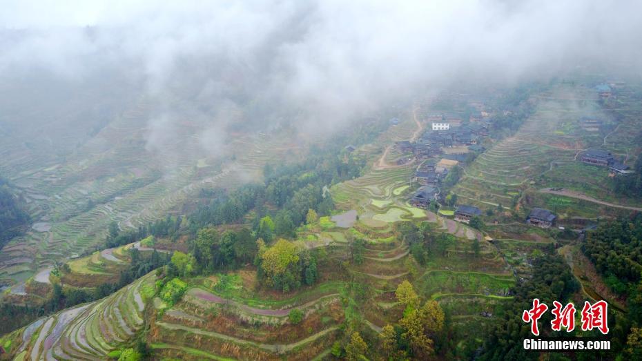 3月15日,地处广西北部的三江侗族自治县与融水苗族自治县交界地带的梯田里,红色浮萍、嫩绿小草、黄色菜花、青翠茶园等交相辉映,在迷雾间若隐若现,宛如五彩斑斓的调色板,美不胜收。龚普康摄