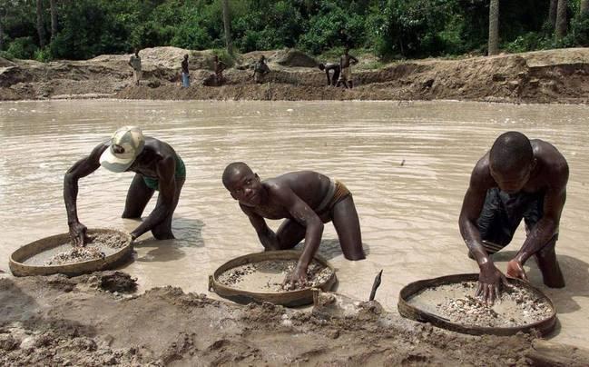 据悉,现在非洲多个落后国家仍以人手发掘钻石。
