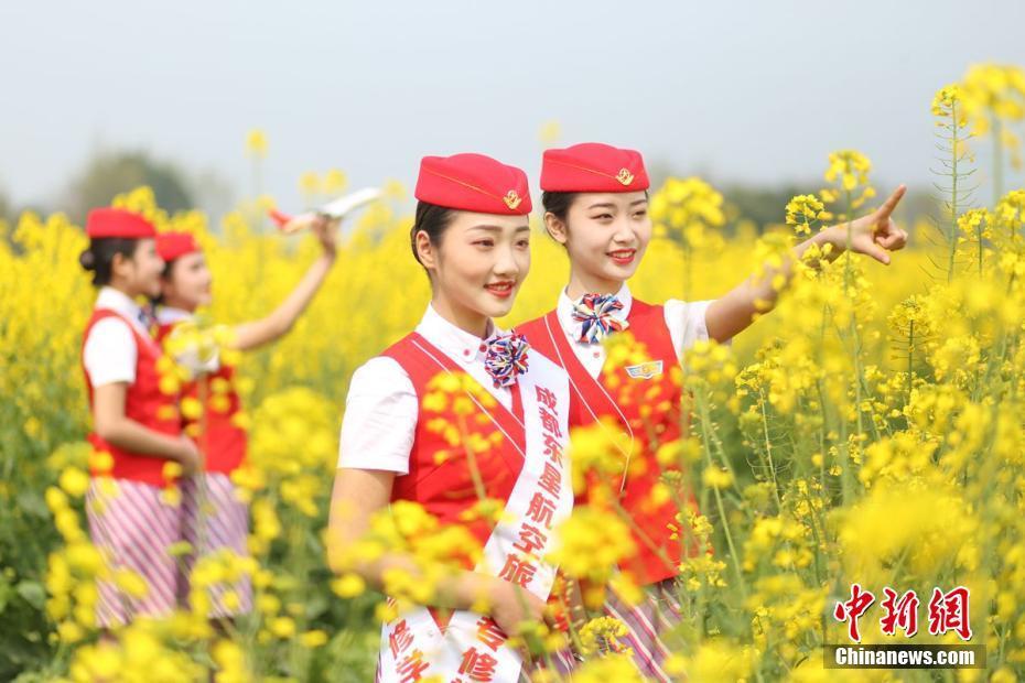 近日,成都一航空学院组织准空姐们来到油菜花田里进行特色室外课教学:踏青赏花、学习航空服务礼仪、与大自然亲密接触。学院院长辜英智表示,把课堂搬到户外,旨在培养学生吃苦耐劳的本性,锻炼她们的社交沟通、空乘礼仪等能力,将来在应聘时,这会给她们的形象加分。刀剑摄