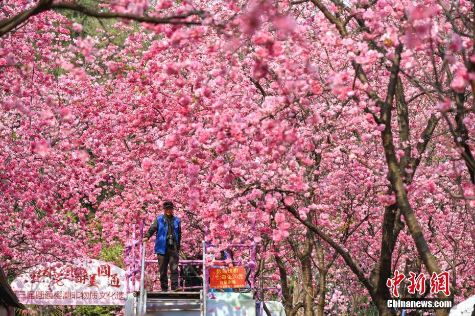 3月17日,云南昆明圆通山樱花和海棠花盛开,吸引民众赏花拍照。中新社记者 任东 摄