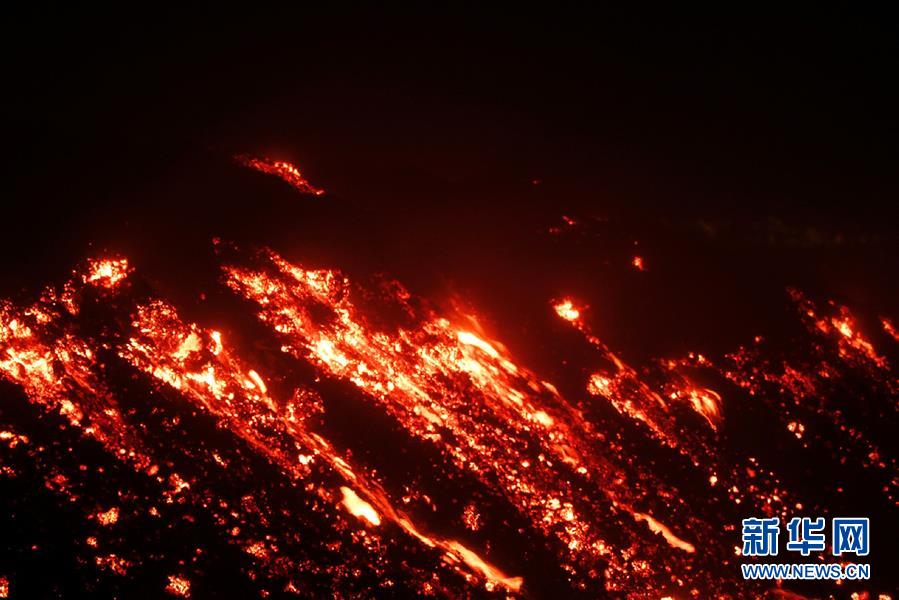 这是3月17日在意大利西西里岛卡塔尼亚附近拍摄的喷发的埃特纳火山。位于意大利西西里岛的埃特纳火山是欧洲最高、最大、最活跃的火山。该火山于16日喷发。新华社/法新