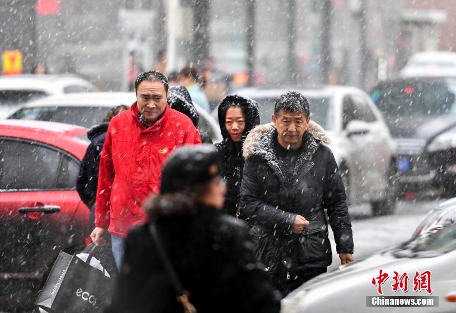 3月20日,二十四节气中的“春分”。当天,受冷空气影响,新疆乌鲁木齐市降下纷纷扬扬的雪花,气温也随之骤降。图为民众冒雪出行。中新社记者 刘新 摄