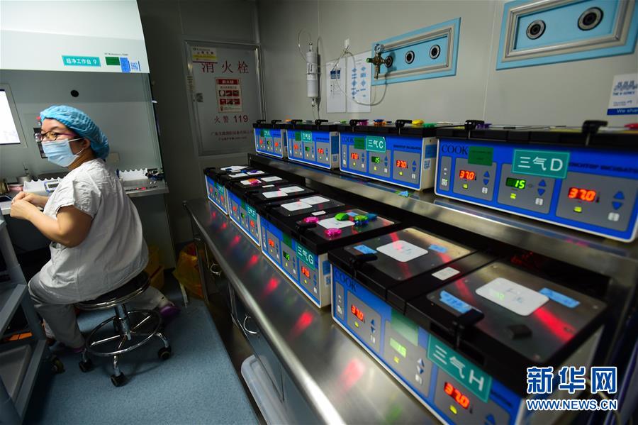 3月20日,广医三院胚胎实验室人员陈仕萍在忙碌。她的身后是一排培养箱,解冻后的胚胎将放入培养箱培养。