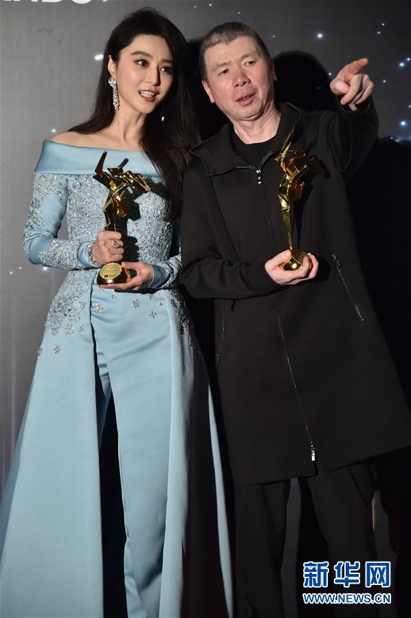 3月21日,获得最佳女主角的范冰冰(左)及最佳电影《我不是潘金莲》的导演冯小刚在新闻发布会上。当日,第11届亚洲电影大奖颁奖礼在香港文化中心举行。新华社记者吕小炜 摄