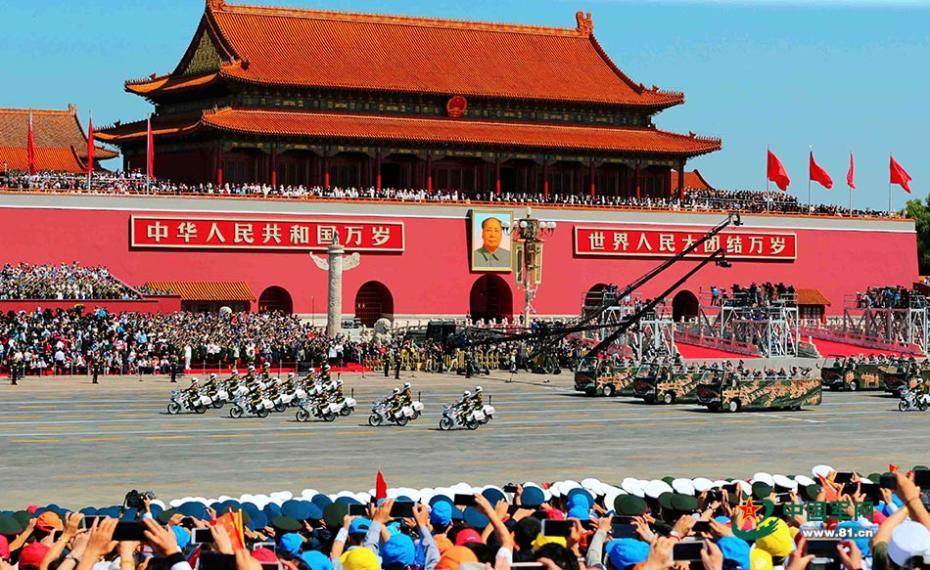 2015年9月3日,武警国宾护卫队员护卫抗战老战士车队率先通过天安门。特约记者 李光印 摄影报道 图片来源:中国军网